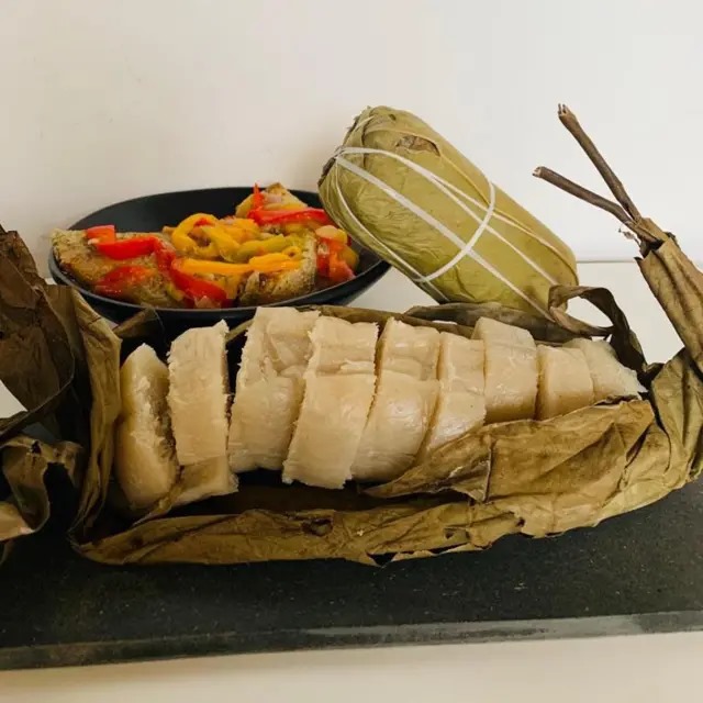 Le Chikwangue , un type de pain de manioc cuit à la vapeur, est une source de glucides très appréciée au GABON.
